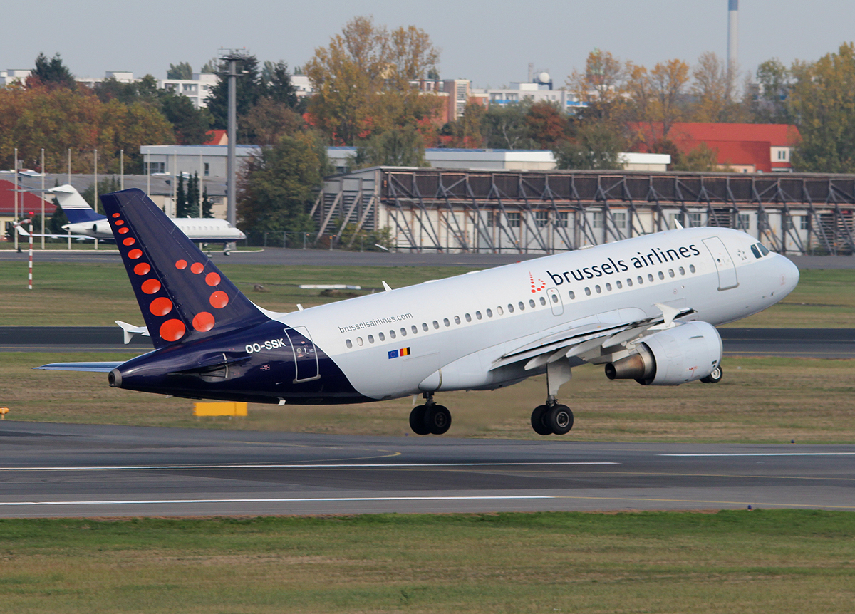 Brussels Airlines A 319-112 OO-SSK beim Start in Berlin-Tegel am 19.10.2013