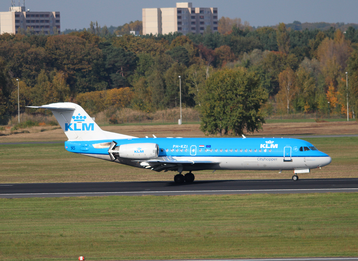 KLM-Cityhopper Fokker 70 PH-KZI beim Start in Berlin-Tegel am 19.10.2013