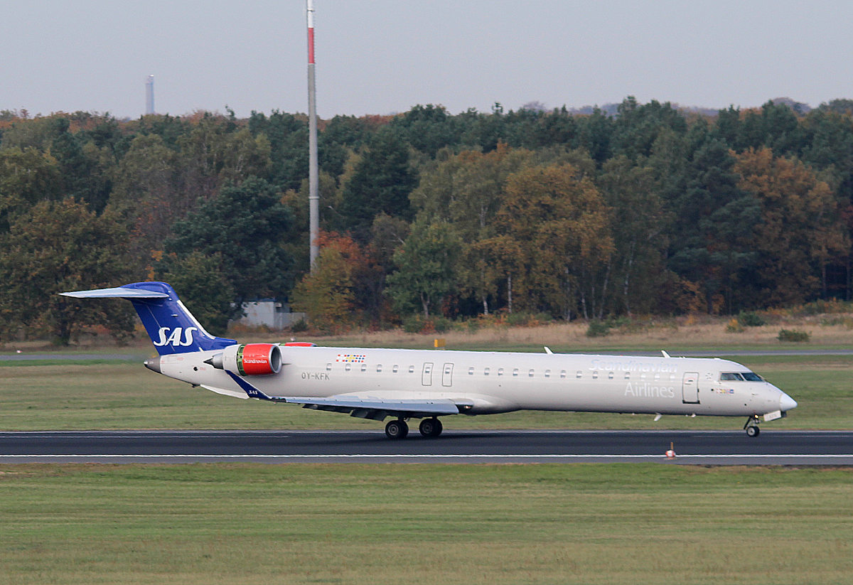SAS CRJ 900ER OY-KFK nach der Landung in Berlin-Tegel am 19.10.2013