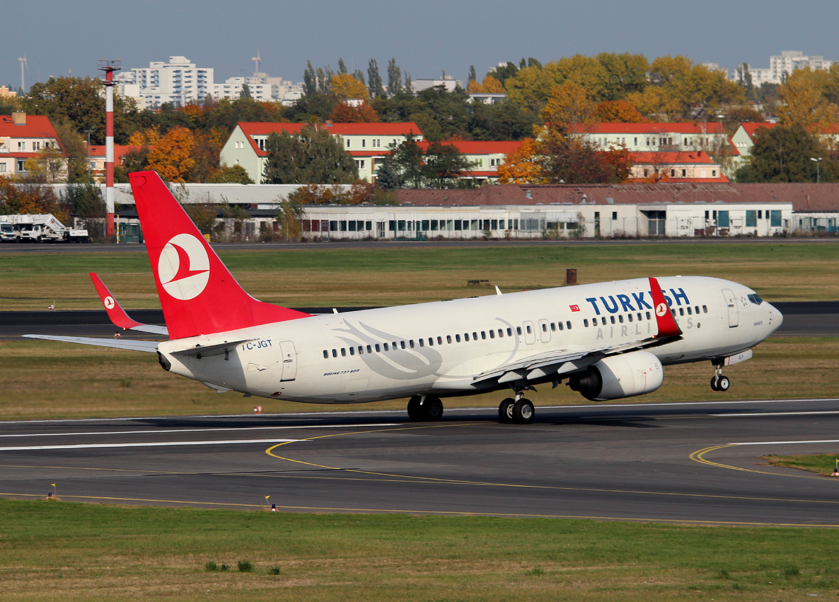 Turkish Airlines B 737-8F2 TC-JGT beim Start in Berlin-Tegel am 19.10.2013
