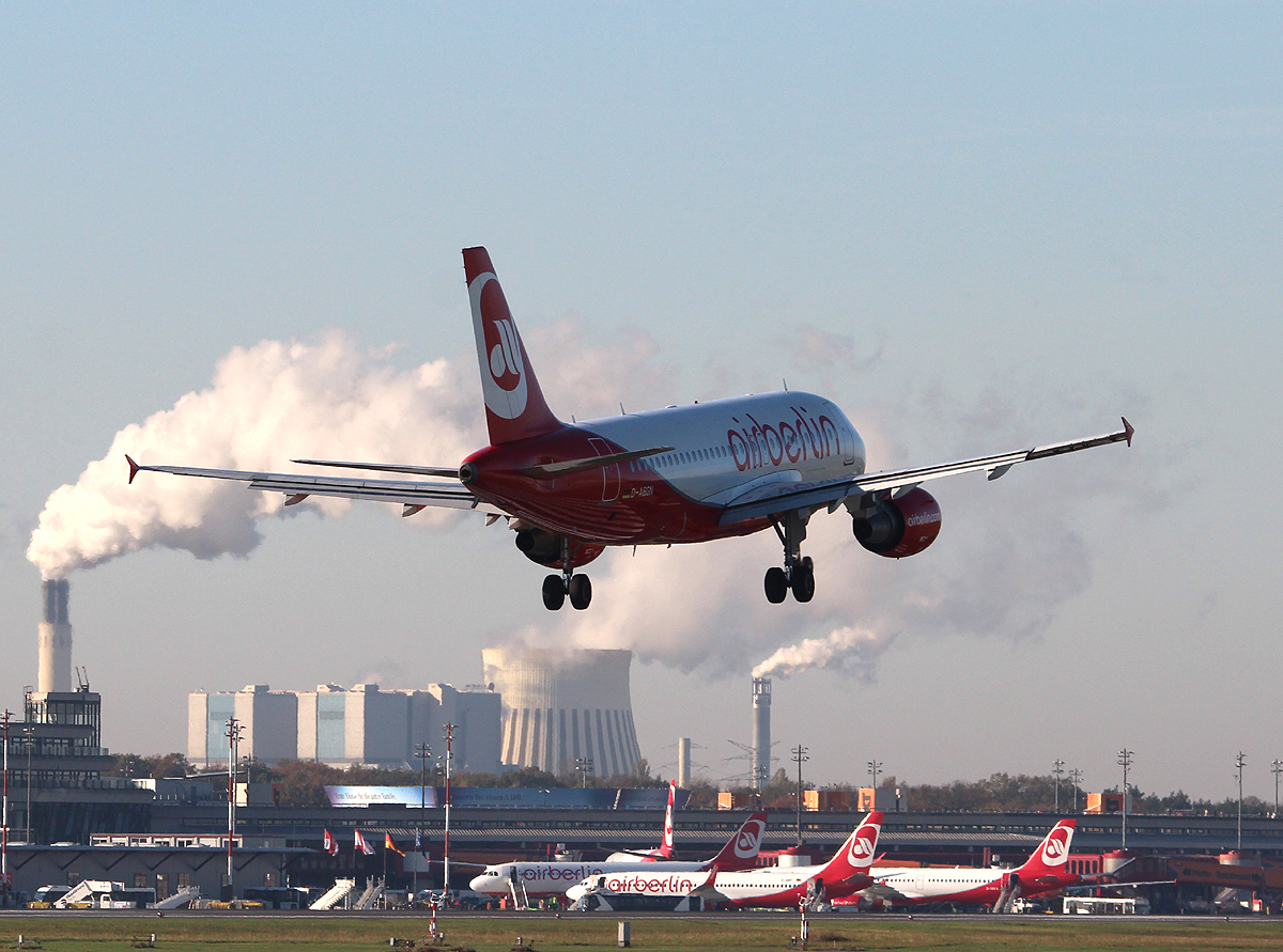 Air Berlin A 320-214 D-ABFG bei der Landung in Berlin-Tegel am 31.10.2013