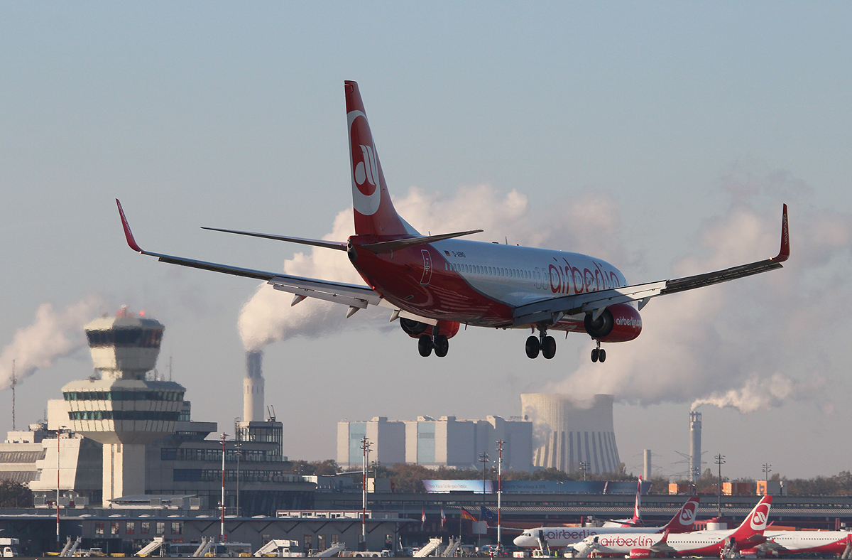 Air Berlin B 737-86J D-ABMO bei der Landung in Berlin-Tegel am 31.10.2013