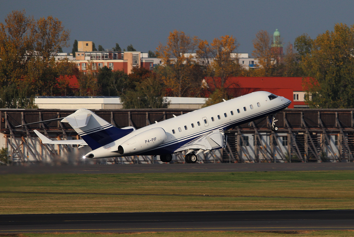 Arab Wings BD-700 1A11 Global 5000 P4-PIF beim Start in Berlin-Tegel am 19.10.2013