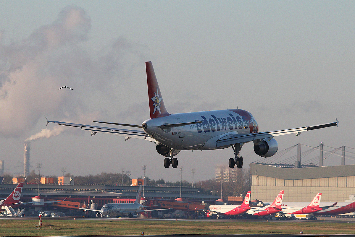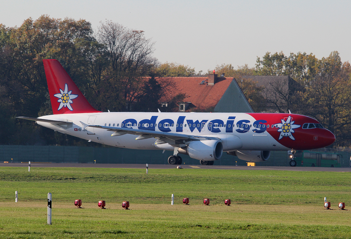 Edelweiss Air A 320-214 HB-IJV bei der Landung in Berlin-Tegel am 31.10.2013