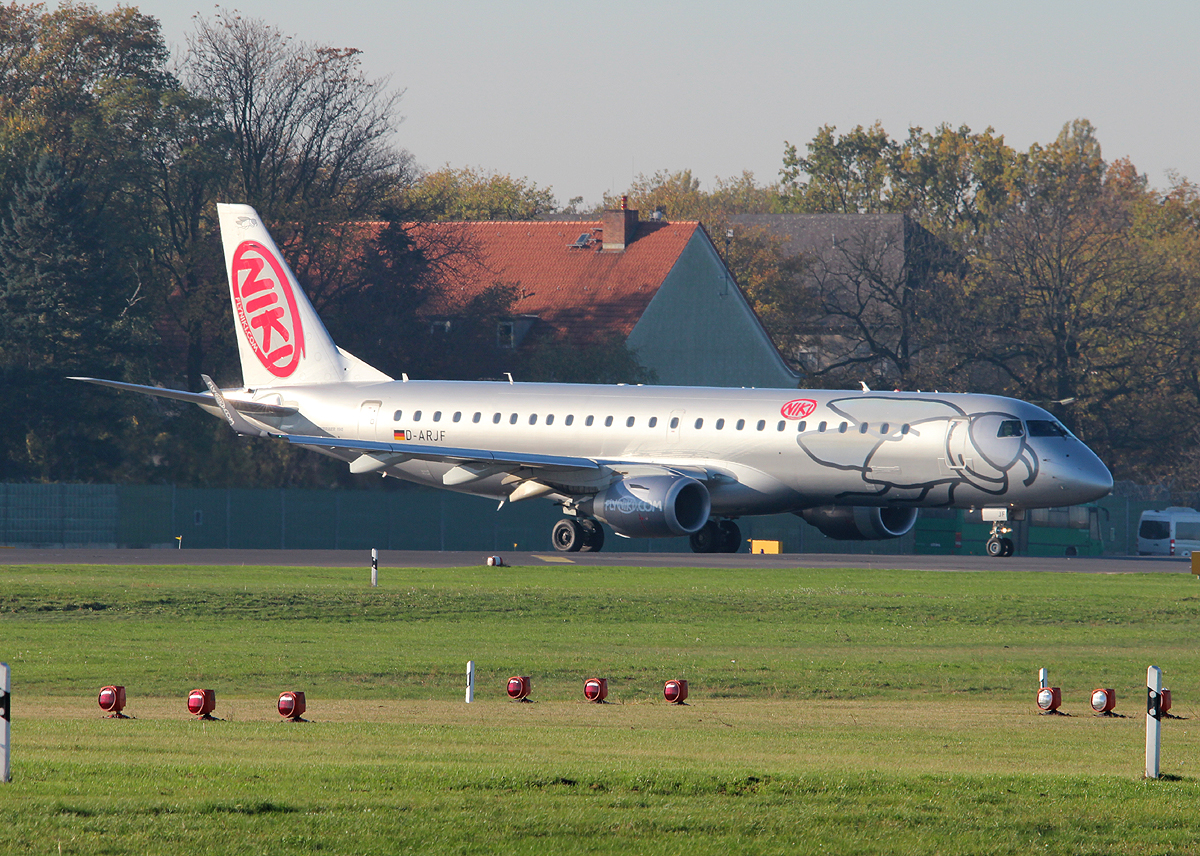 Niki(Air Berlin) ERJ-190-100LR D-ARJF kurz vor dem Start in Berlin-Tegel am 31.10.2013