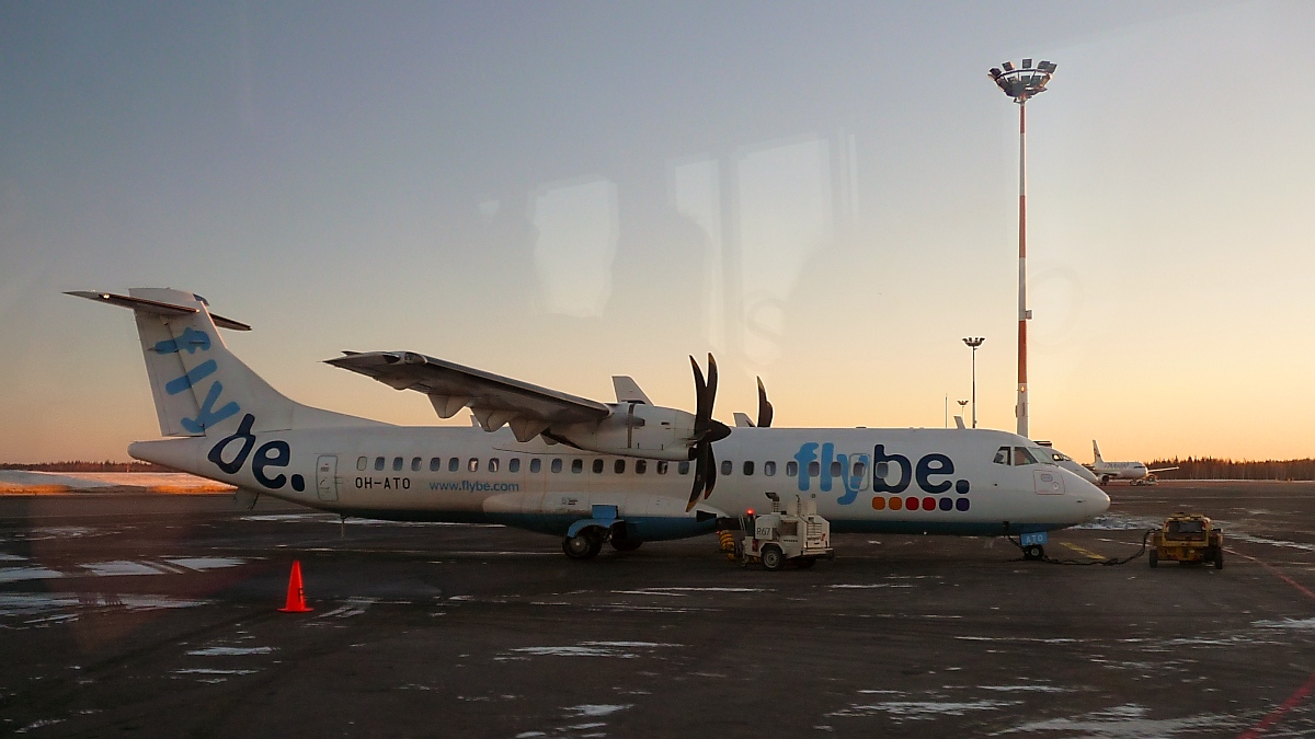 Flybe ATR 72-500, OH-ATO, am Flughafen Helsinki-Vantaa, 9.3.13