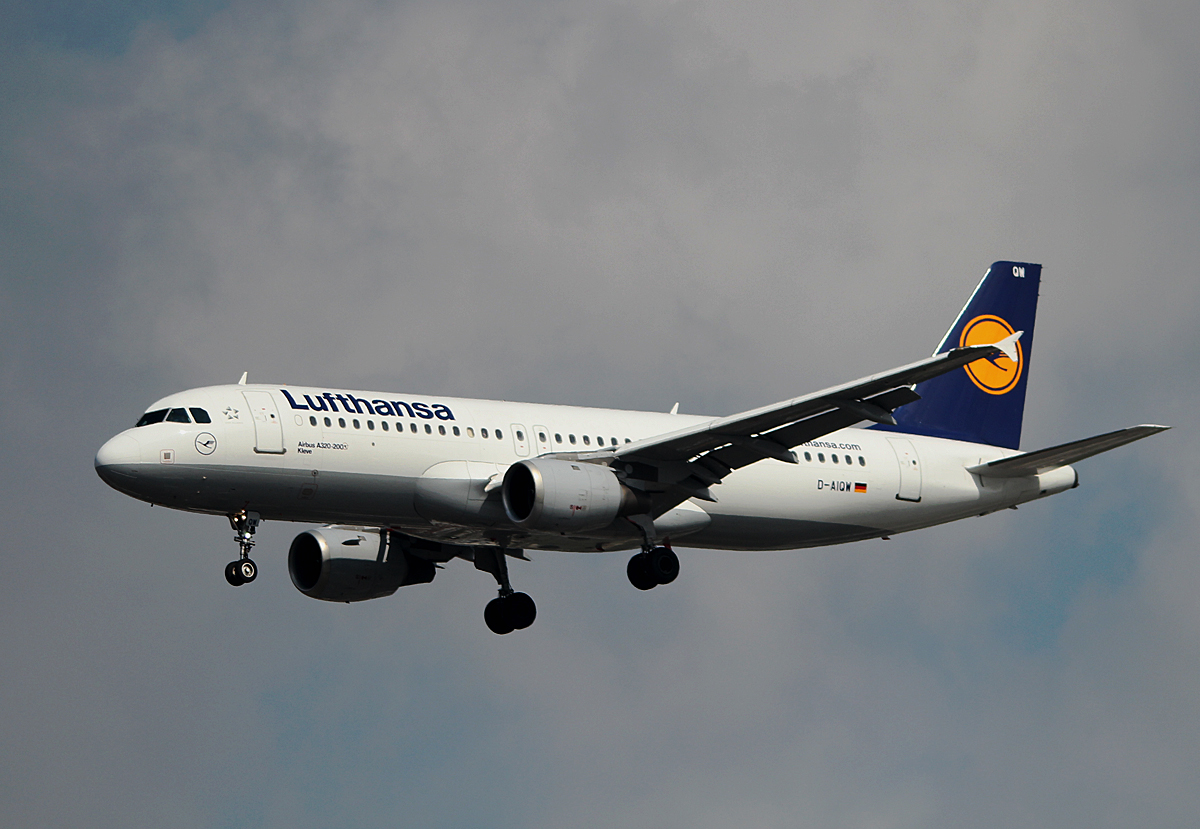 Lufthansa A 320-211 D-AIQW "Kleve" bei der Landung in Berlin-Tegel am 12.04.2014