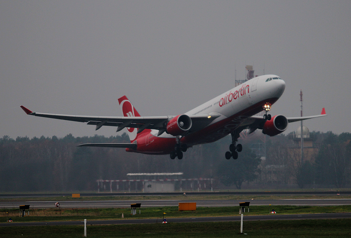 Air Berlin A 330-223 D-ALPB beim Start in Berlin-Tegel am 29.11.2014
