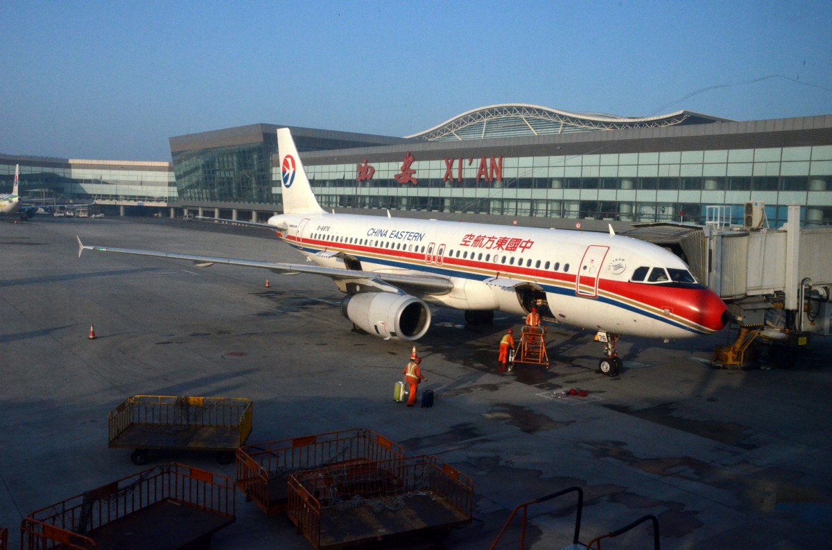 Airbus A 320 B-6876 von China Eastern auf dem Flughafen von XI‘AN am Gate . Beobachtet am 23.10.2014.