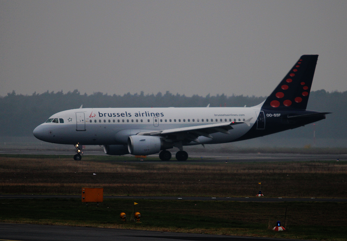 Brussels Airlines A 319-111 OO-SSF bei der Ankunft in Berlin-Tegel am 29.11.2014