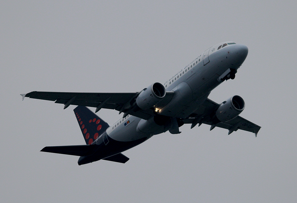 Brussels Airlines A 319-111 OO-SSF beim Start in Berlin-Tegel am 29.11.2014