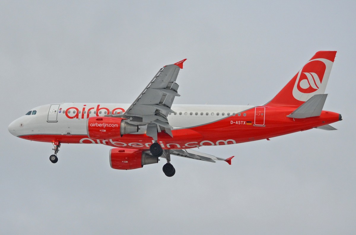 D-ASTX Air Berlin Airbus A319-112 beim Anflug auf Tegel am 04.02.2015