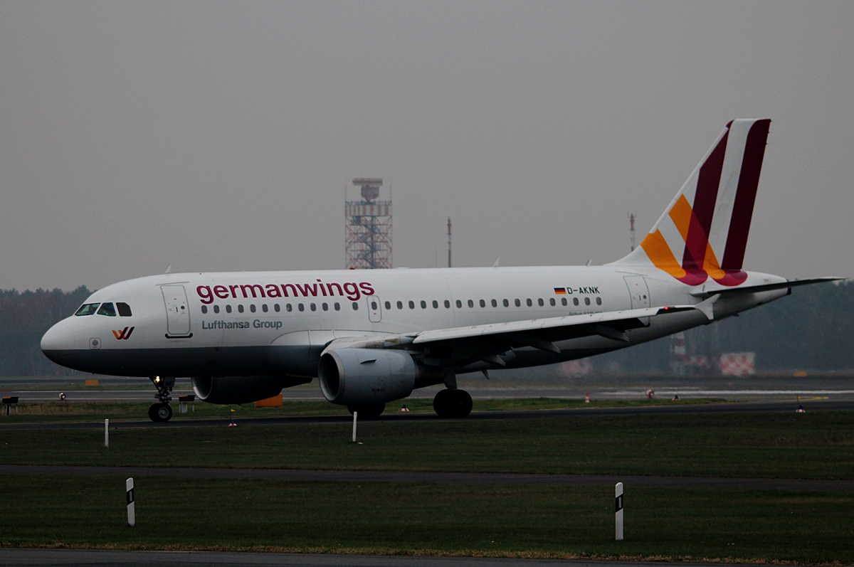 Germanwings A 319-112 D-AKNK bei der Ankunft in Berlin-Tegel am 29.11.2014