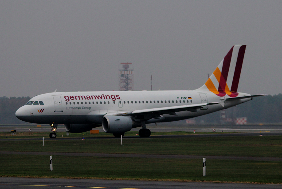 Germanwings A 319-112 D-AKNT bei der Ankunft in Berlin-Tegel am 29.11.2014