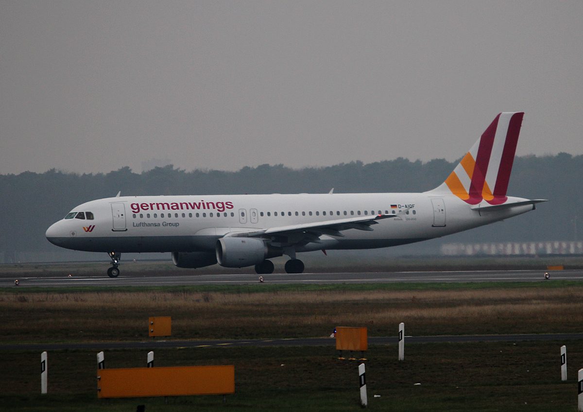 Germanwings A 320-211 D-AIQF bei der Ankunft in Berlin-Tegel am 29.11.2014