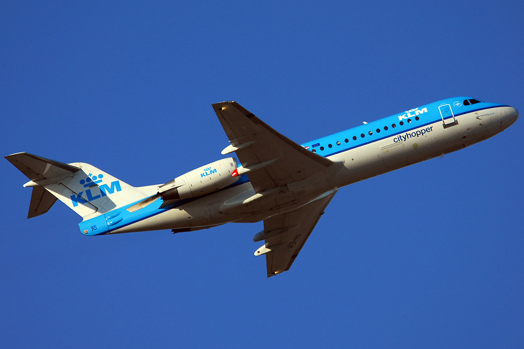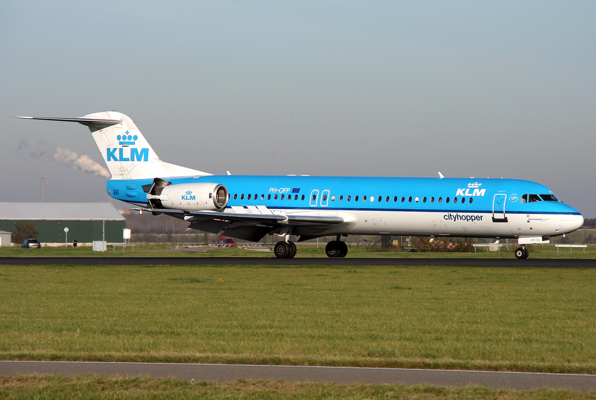 KLM Cityhopper F-100 PH-OFP auf 18R in AMS / EHAM / Amsterdam am 15.10.2011