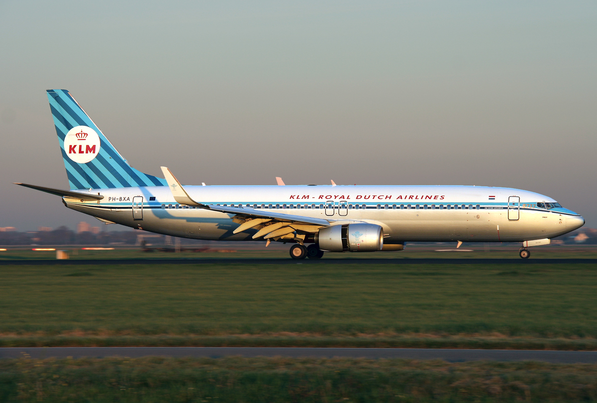 KLM Retro B737-800 PH-BXA im letzten Licht auf 18R in AMS / EHAM / Amsterdam am 15.10.2011
