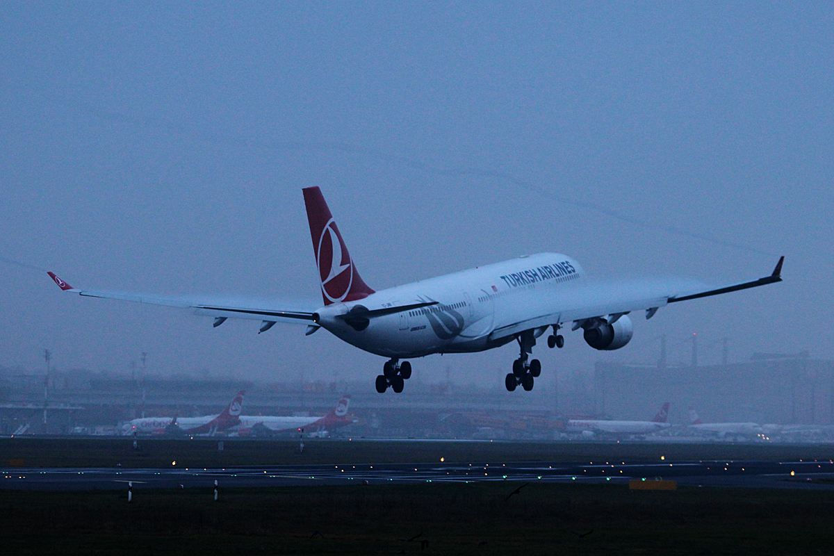 Turkish Airlines A 330-203 TC-JNB bei der Landung in Berlin-Tegel am 14.12.2014