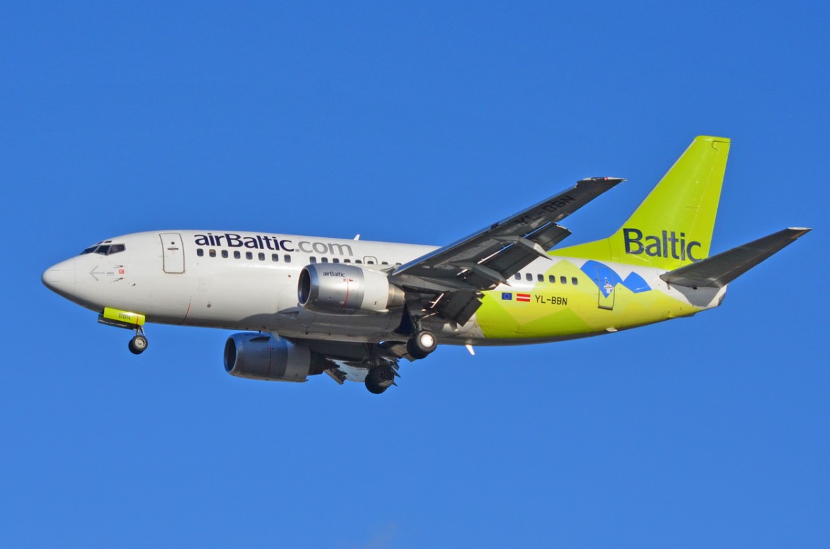 YL-BBN Air Baltic Boeing 737-522 am 29.01.2015 beim Landeanflug auf Tegel