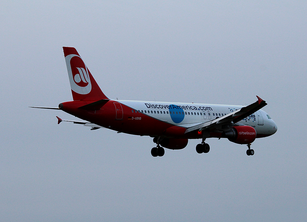Air Berlin A 320-214 D-ABNB bei der Landung in Berlin-Tegel am 03.01.2015