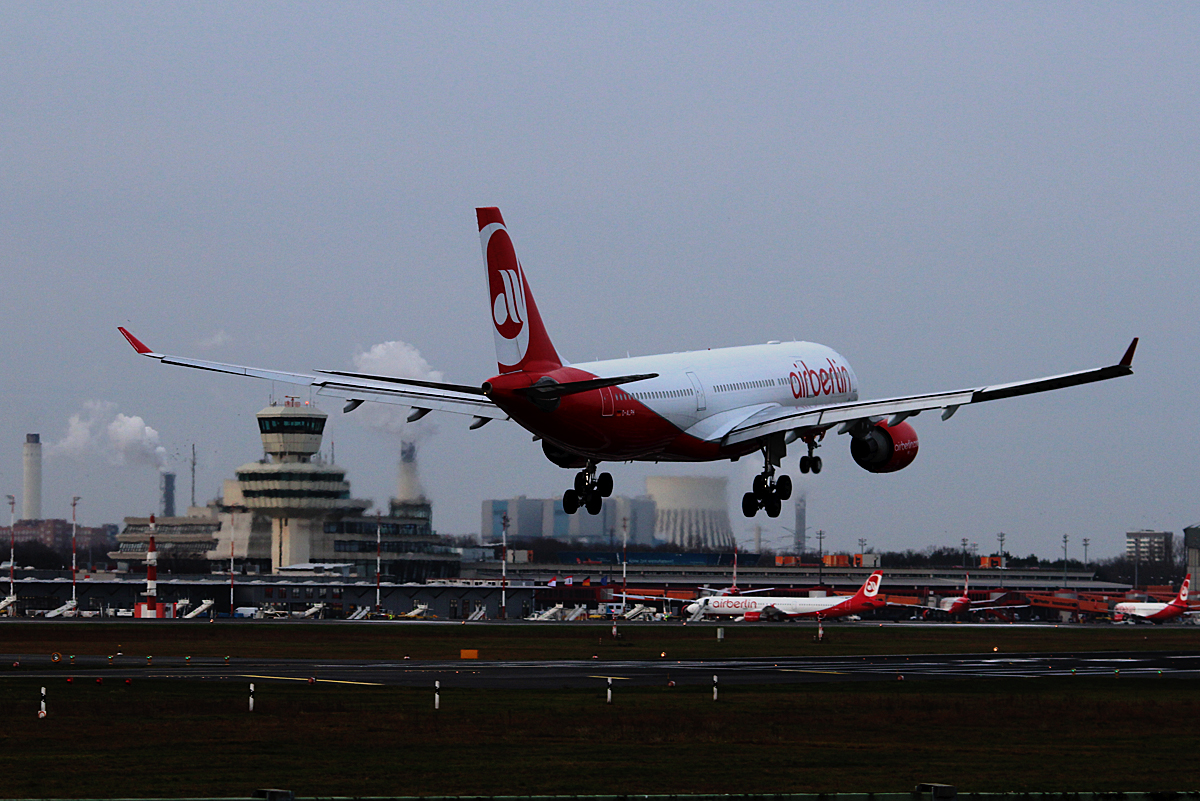 Air Berlin A 330-223 D-ALPH bei der Landung in Berlin-Tegel am 03.01.2015