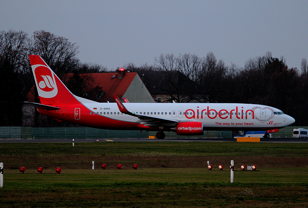 Air Berlin B 737-86J D-ABKK kurz vor dem Start in Berlin-Tegel am 03.01.2015