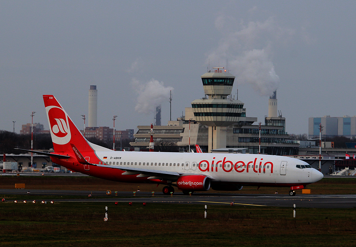 Air Berlin B 737-86J D-ABKM kurz vor dem Start in Berlin-Tegel am 03.01.2015