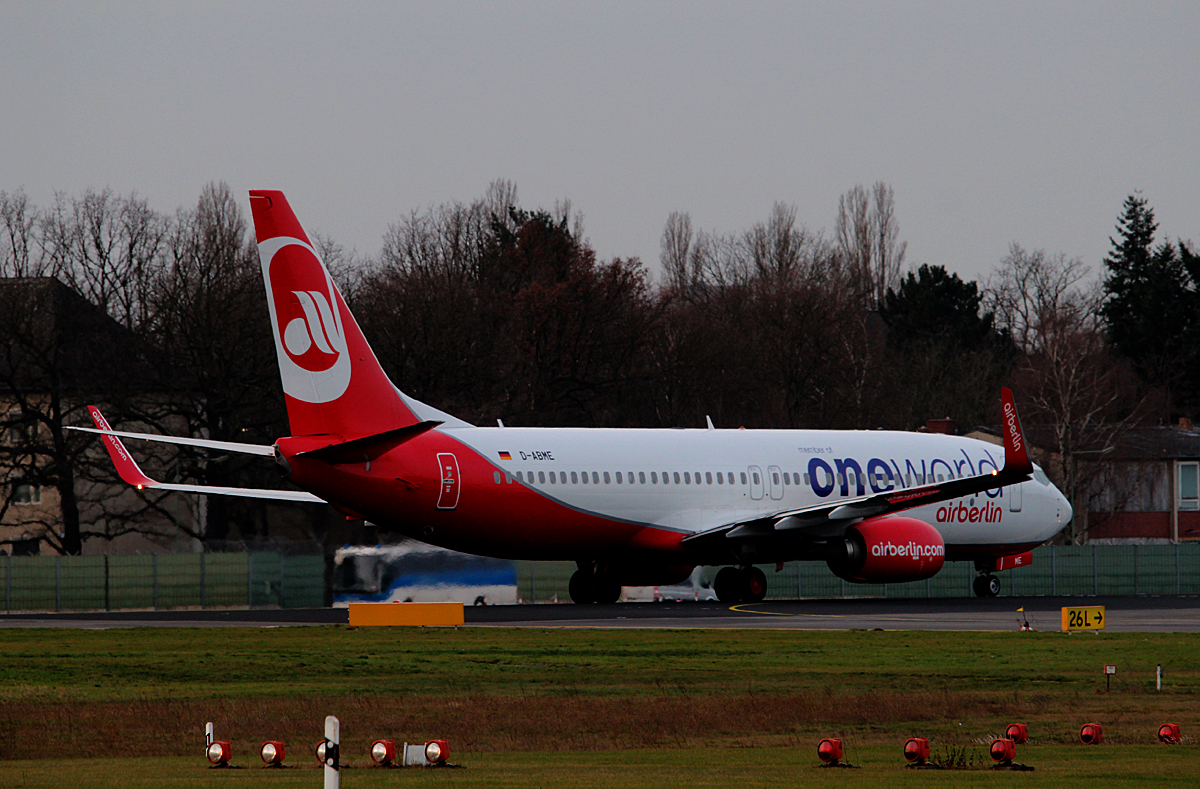 Air Berlin B 737-86J D-ABME kurz vor dem Start in Berlin-Tegel am 03.01.2015