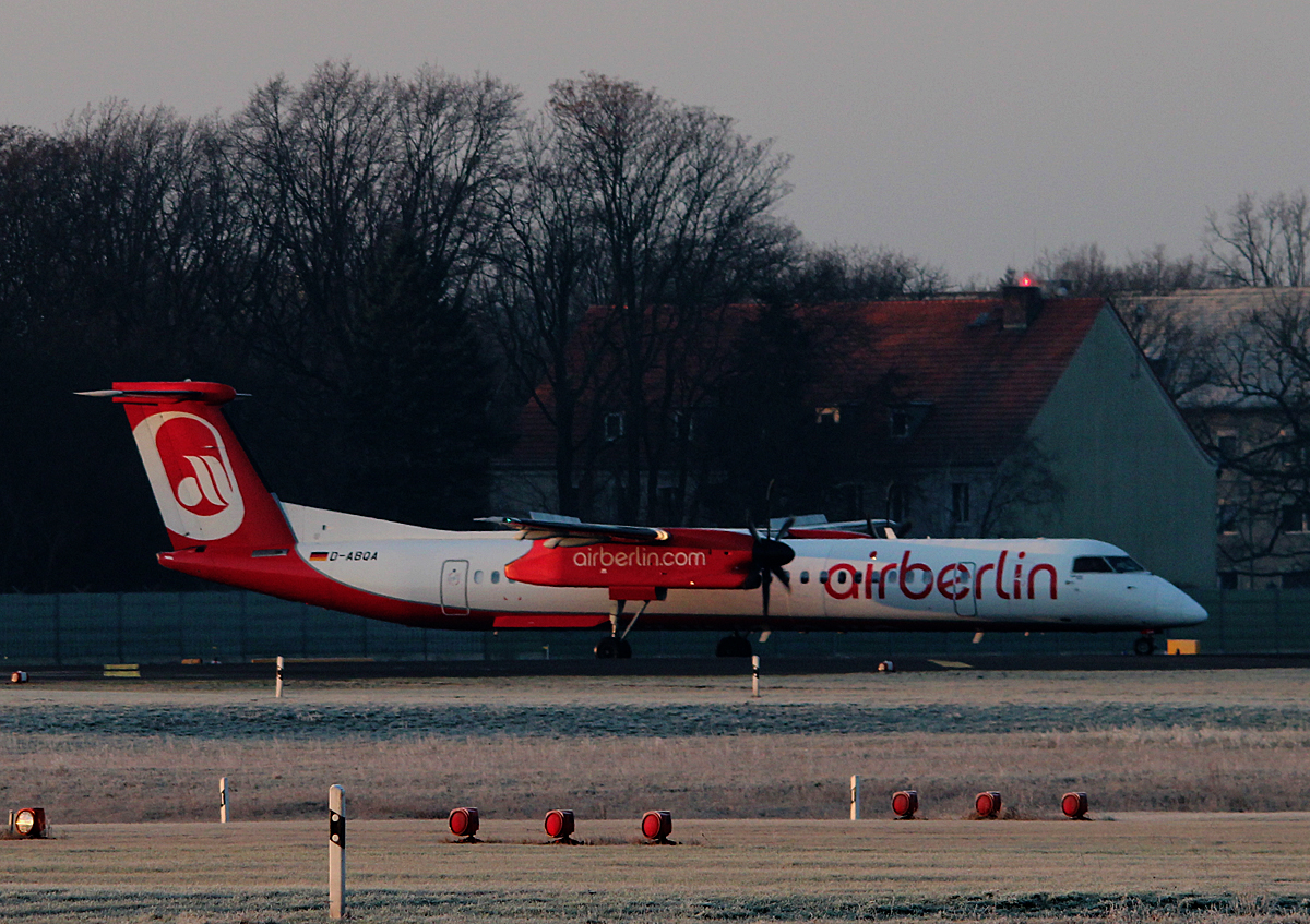 Air Berlin DHC-8-402Q D-ABQA kurz vor dem Start in Berlin-Tegel am 18.01.2015
