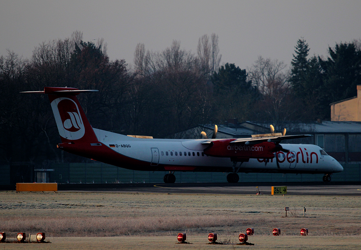 Air Berlin DHC-8-402Q D-ABQG kurz vor dem Start in Berlin-Tegel am 18.01.2015