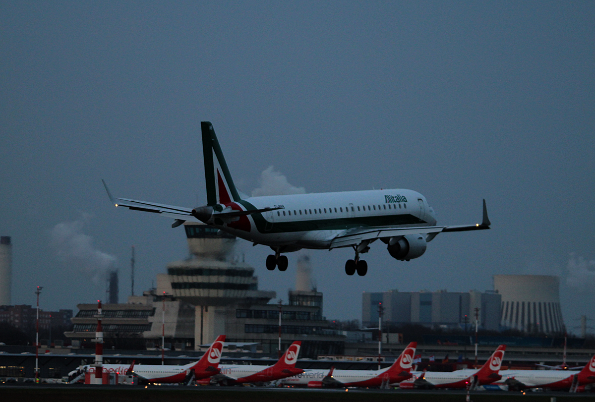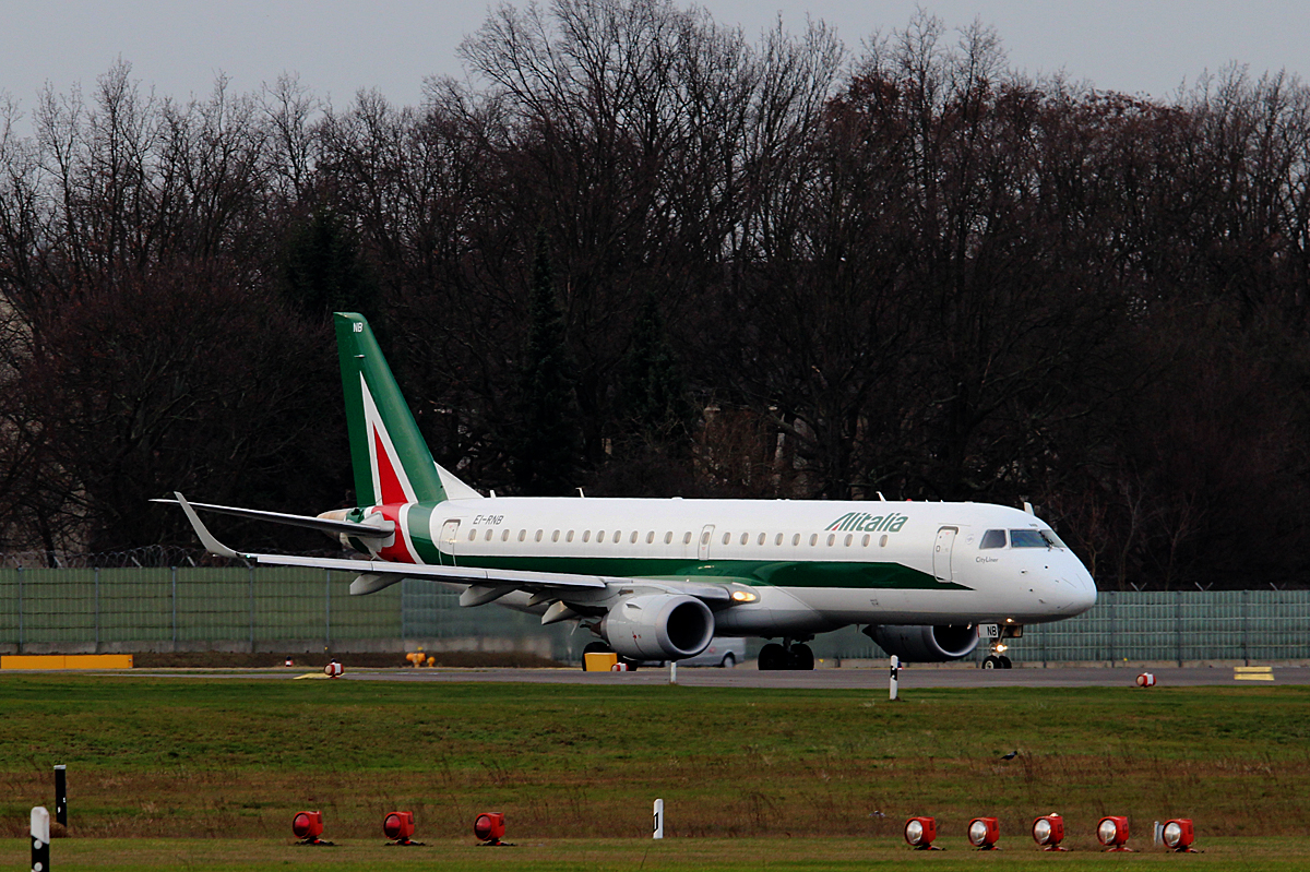 Alitalia CityLiner ERJ-190-100LR EI-RNB bei der Landung in Berlin-Tegel am 03.01.2015