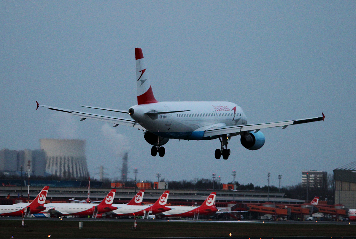 Austrian Airlines A 320-214 OE-LBT bei der Landung in Berlin-Tegel am 03.01.2015