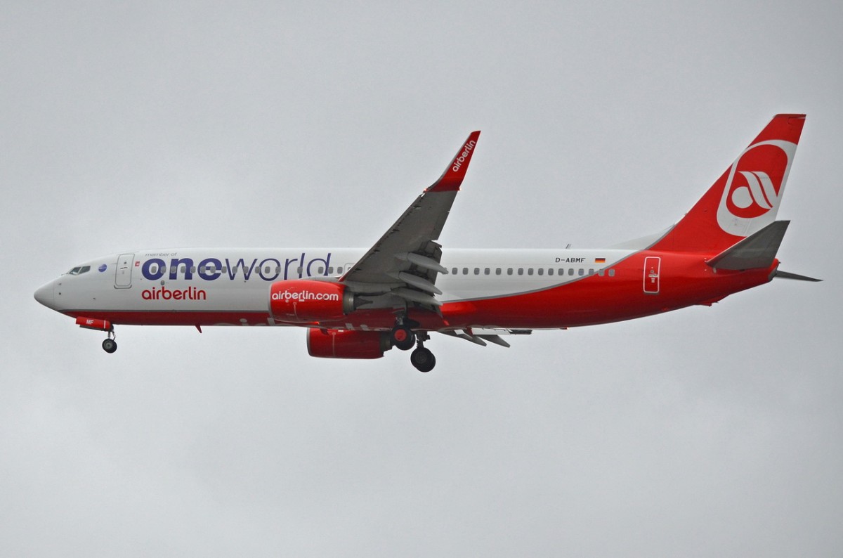 D-ABMF Air Berlin Boeing 737-86J(WL) am 09.02.2015 beim Anflug Tegel