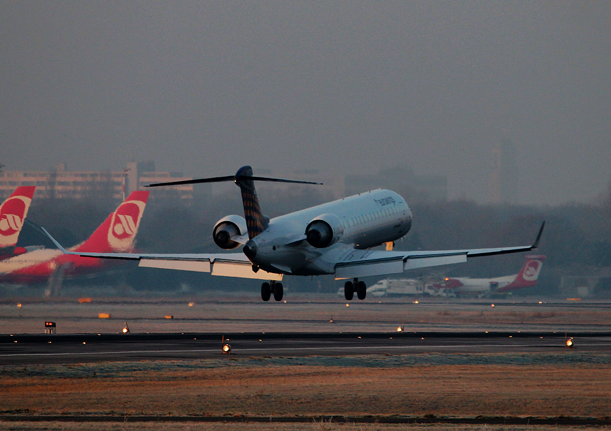 Eurowings CRJ900NG D-ACNC bei der Landung in Berlin-Tegel am 18.01.2015