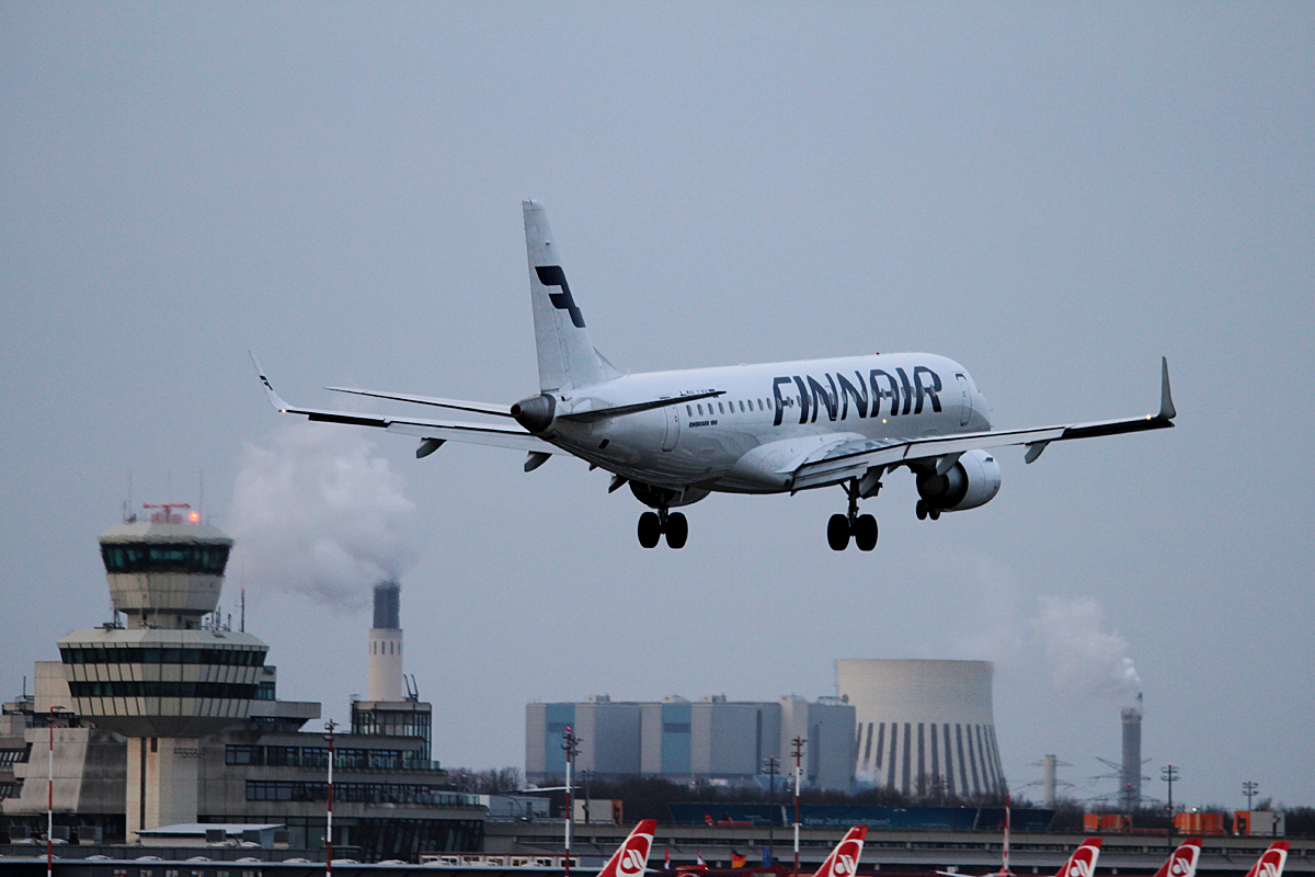 Finnair ERJ-190-100LR OH-LKK bei der Landung in Berlin-Tegel am 18.01.2015