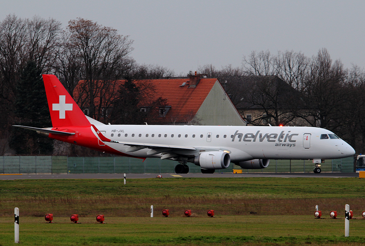 Helvetic ERJ-190-100LR HB-JVL kurz vor dem Start in Berlin-Tegel am 03.01.2015