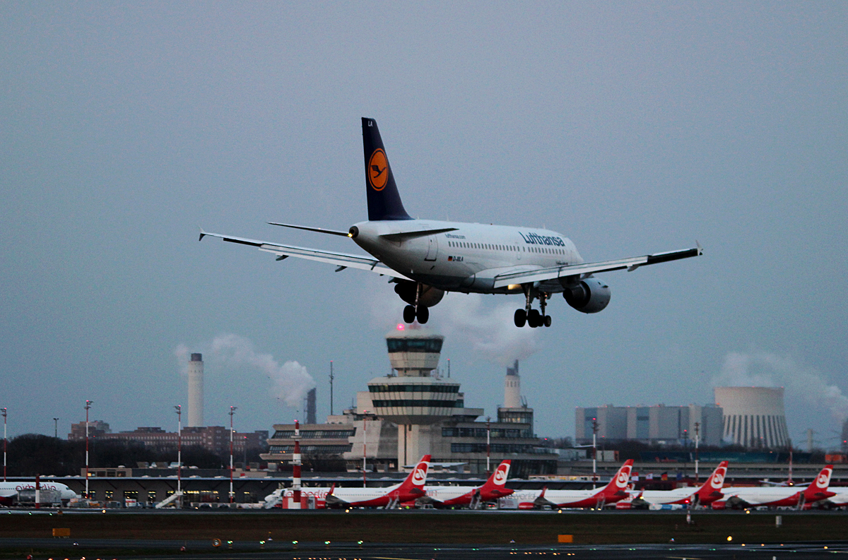 Lufthansa A 320-214 D-AIUE bei der Landung in Berlin-Tegel am 18.01.2015