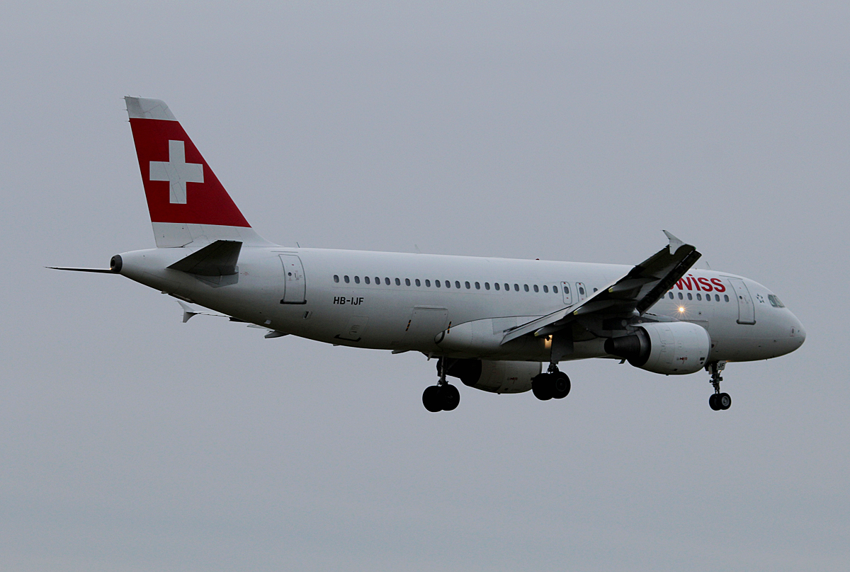 Swiss A 320-214 HB-IJF bei der Landung in Berlin-Tegel am 03.01.2015