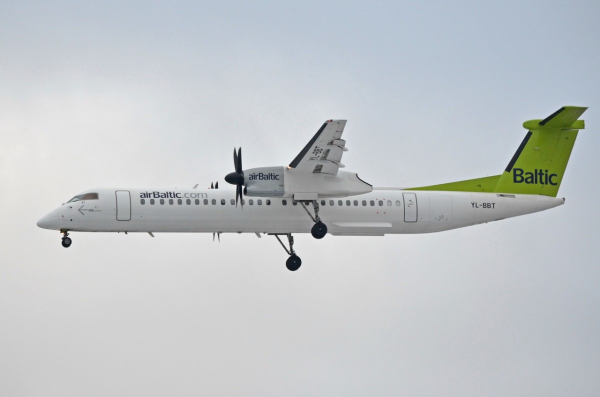 Air Baltic DHC-8-402Q YL-BAE bei der Landung in Berlin-Tegel am 03.01.2015
