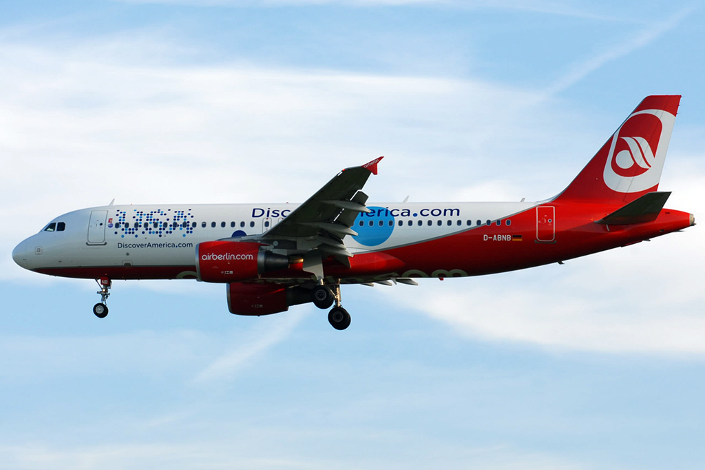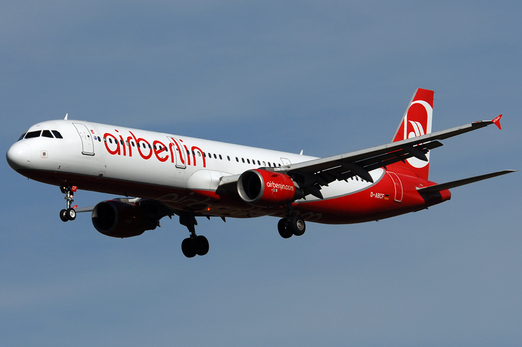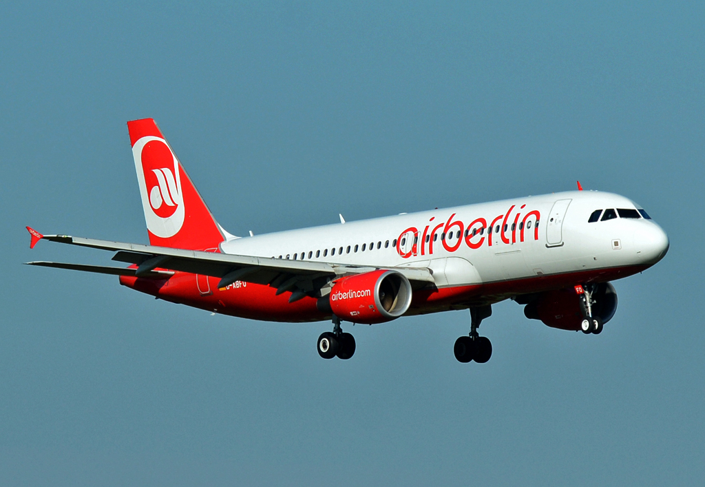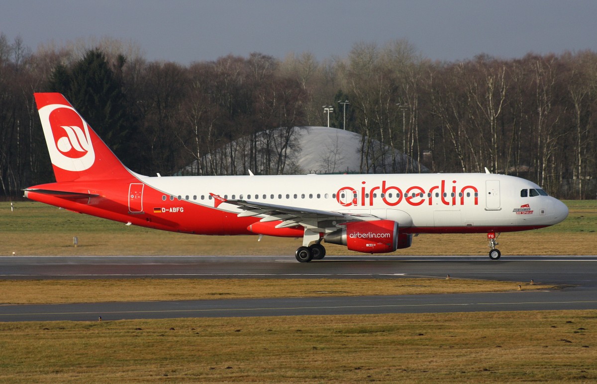 D-ABFU Air Berlin Airbus A320-214 in Tegel am 25.02.2015 beim Landeanflug