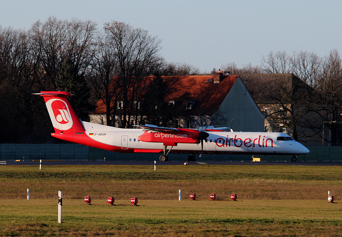 Air Berlin DHC-8-402Q D-ABQN kurz vor dem Start in Berlin-Tegel am 08.02.2015