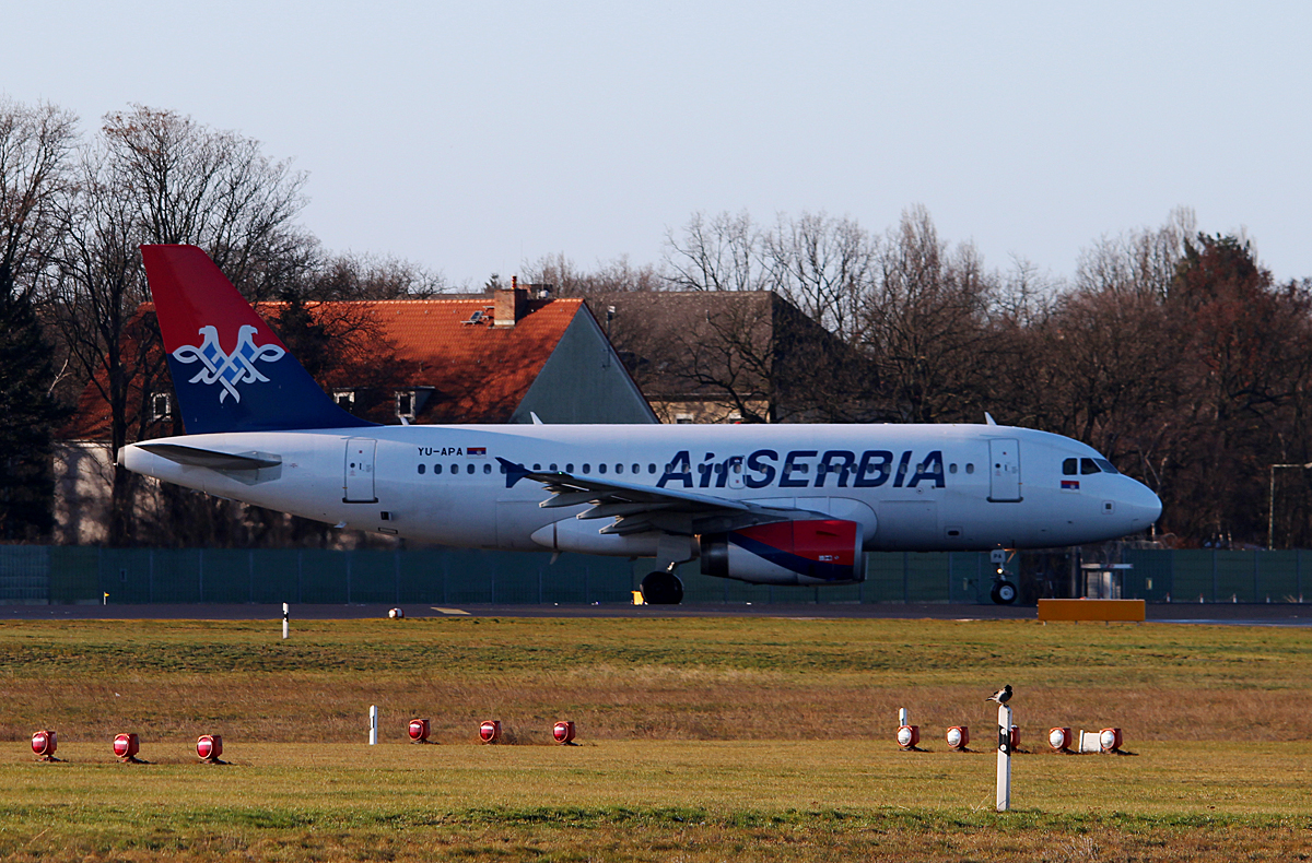 Air Serbia A 319-132 YU-APA kurz vor dem Start in Berlin-Tegel am 08.02.2015