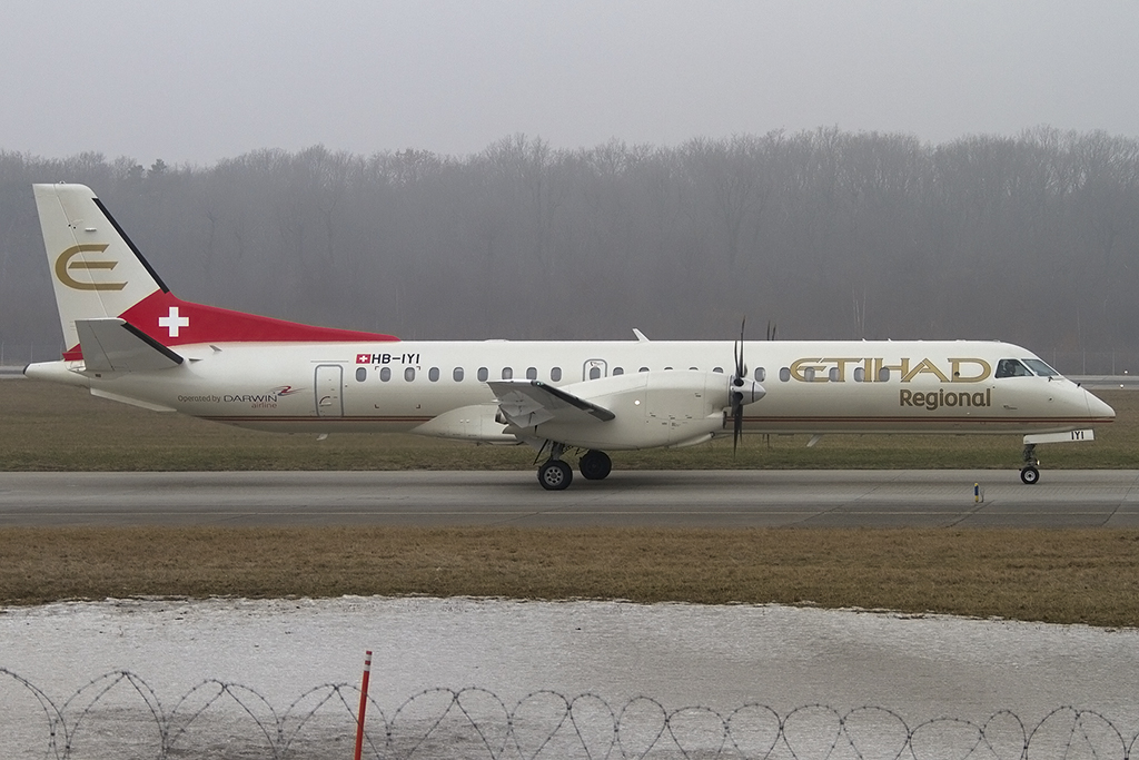 Darwin Airlines - Etihad Regional, HB-IYI, Saab, 2000, 12.02.2015, GVA, Geneve, Switzerland