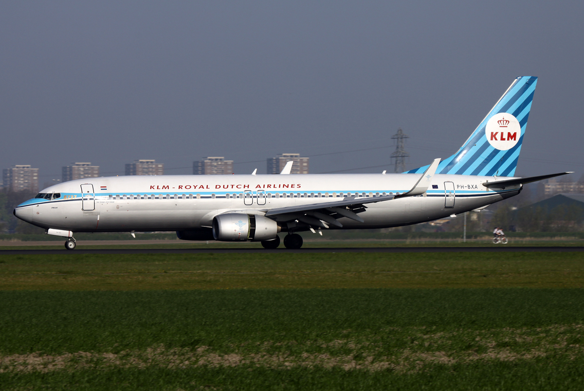 KLM Retro B737-800 PH-BXA bei der Landung auf 18R in AMS / EHAM / Amsterdam am 05.05.2013