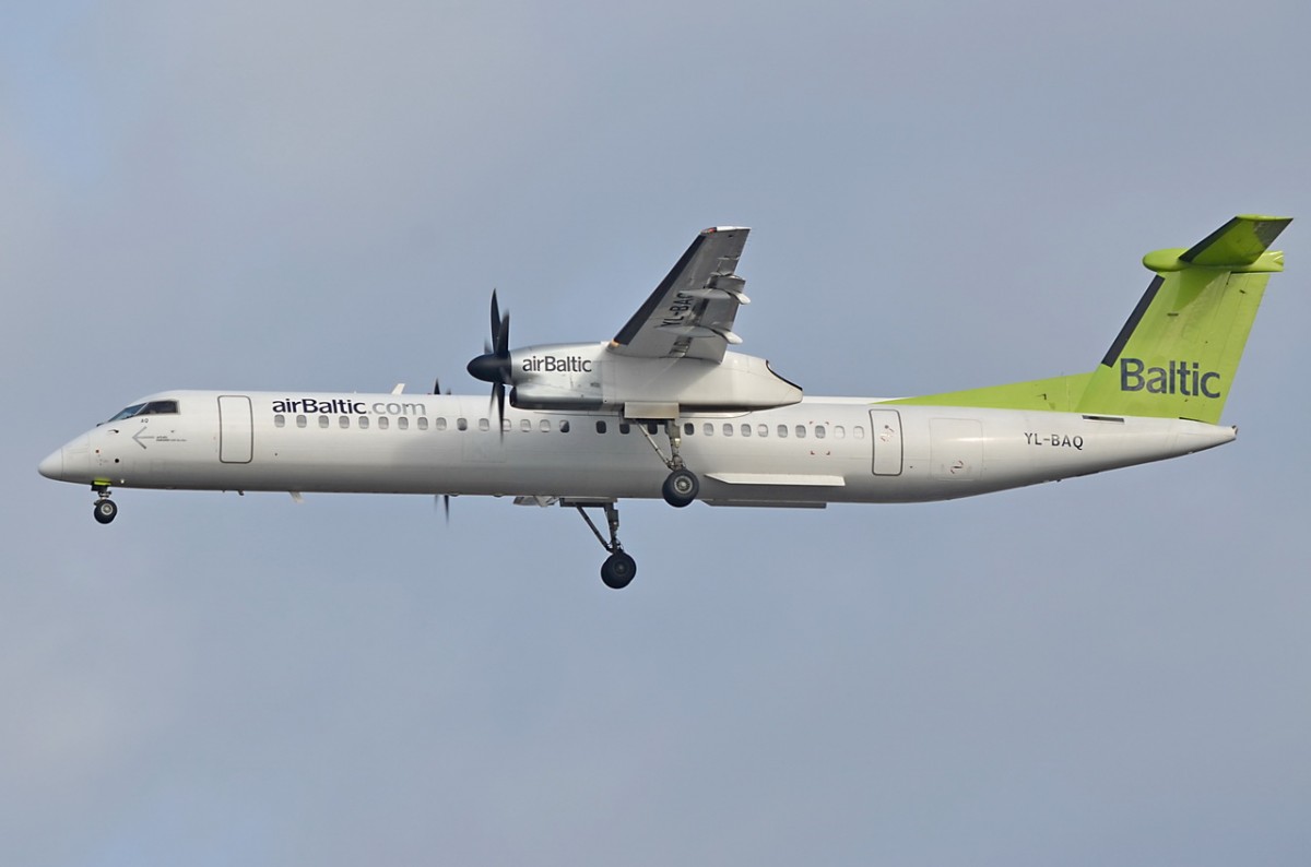YL-BAQ Air Baltic De Havilland Canada DHC-8-402Q Dash 8 beim Anflug auf Tegel am 25.02.2015