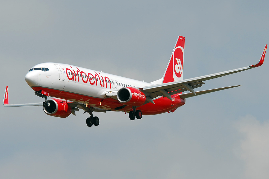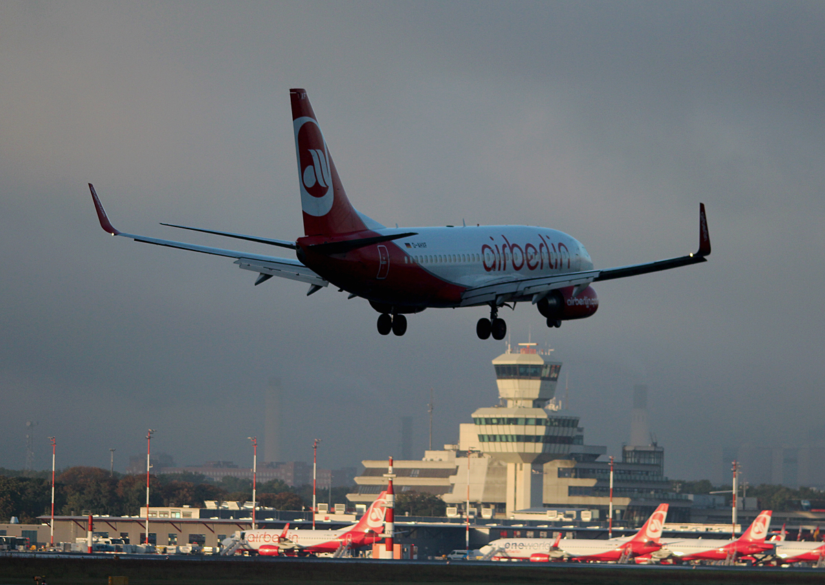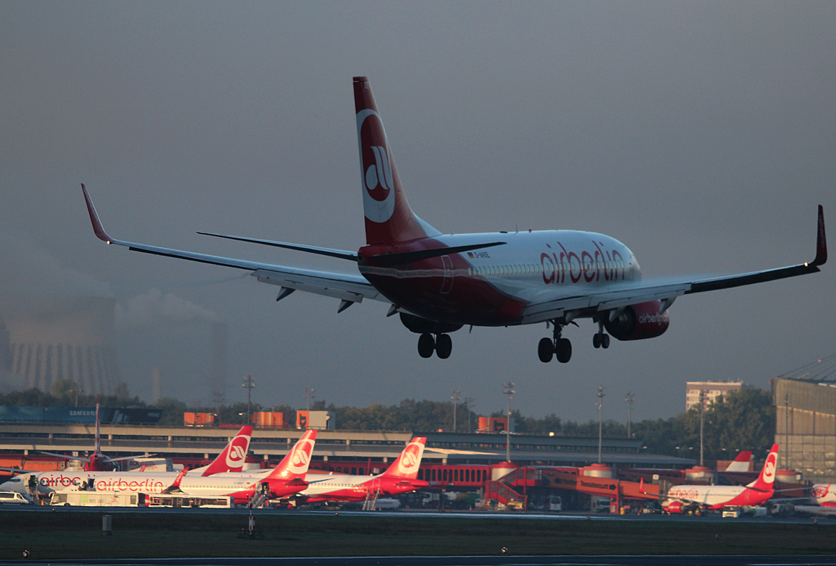 Air Berlin B 737-7K5 D-AHXE bei der Landung in Berlin-Tegel am 27.09.2014