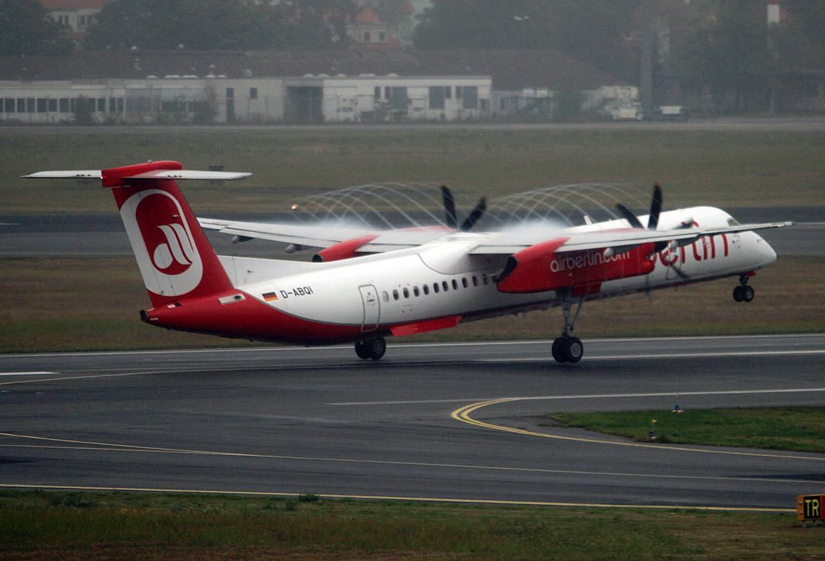 Air Berlin DHC-8-402Q D-ABQE beim Start in Berlin-Tegel am 13.09.2014