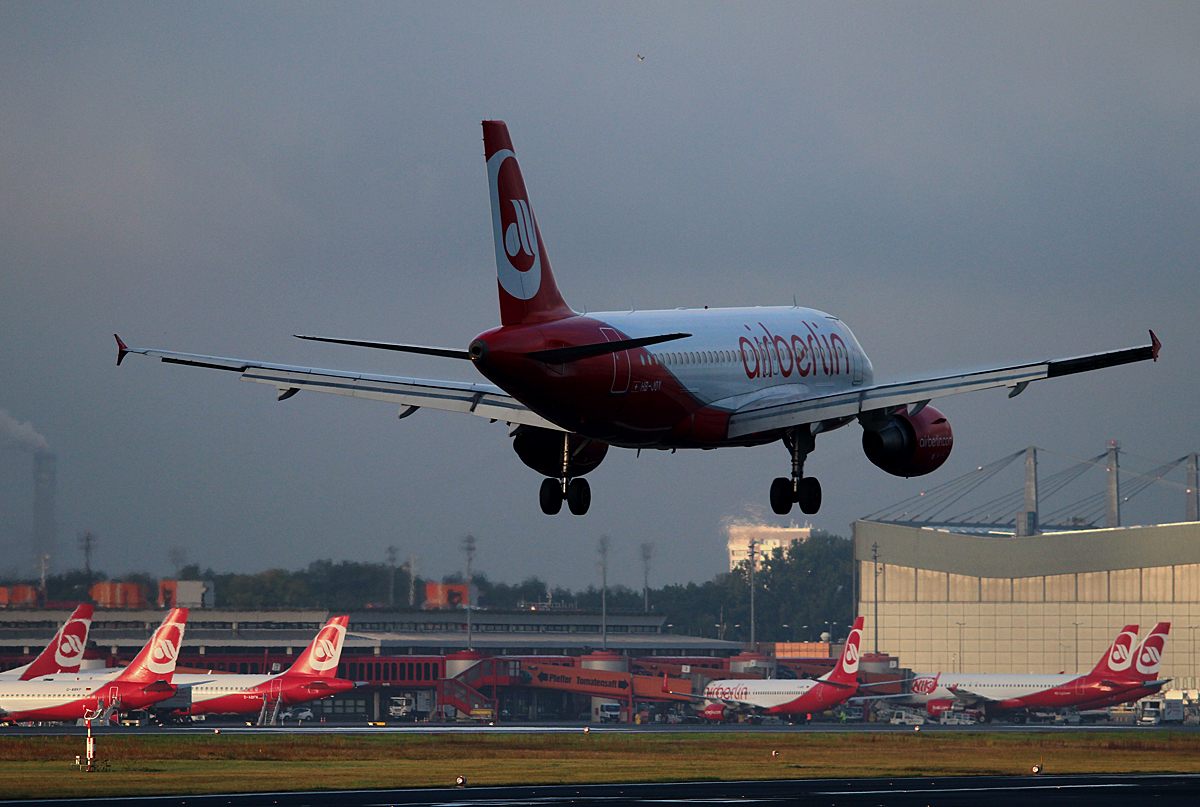 Air Berlin A 320-214 D-ABDP bei der Landung in Berlin-Tegel am 27.09.2014