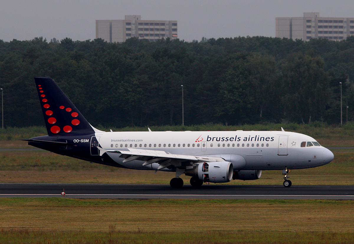 Brussels Airlines A 319-112 OO-SSM nach der Landung in Berlin-Tegel am 13.09.2014