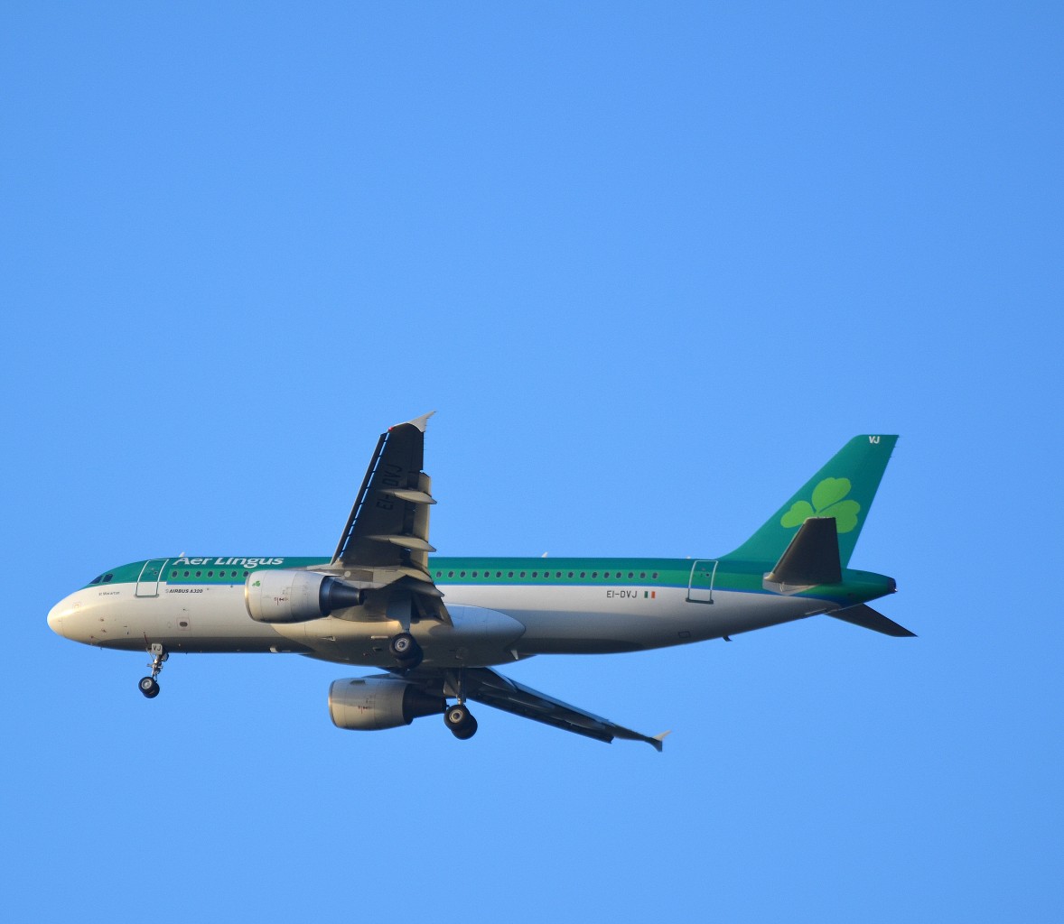Der Aer Lingus Airbus A320 EI-DVJ im Anflug auf Fuhlsbüttel über Hamburg Poppenbüttel am 04.01.15